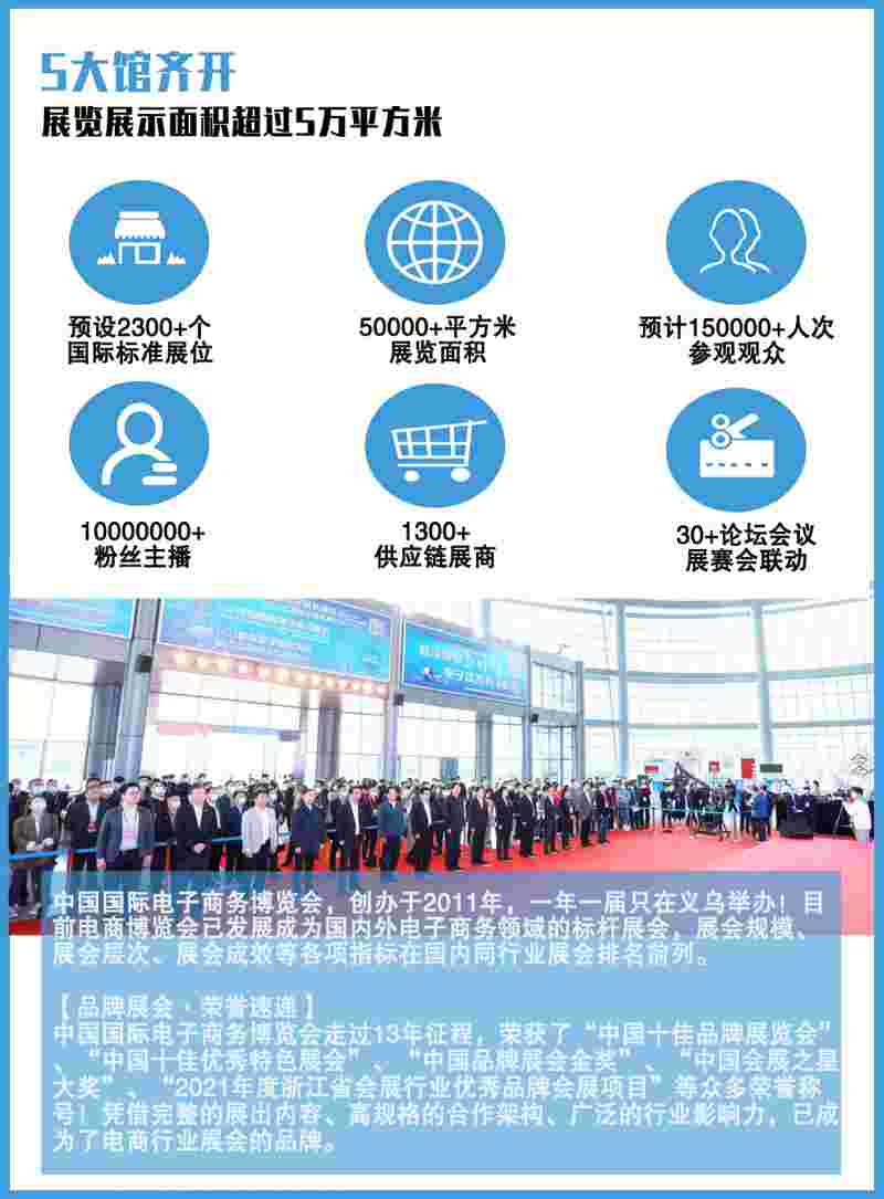 2023中國國際電子商務(wù)博覽會將于6月15-17日在義烏國際博覽中心舉辦!展覽面積50000平方米,8大特色展區(qū)全域鏈布局!