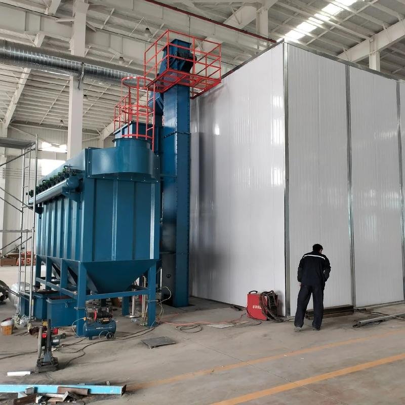 針對性改造方案:保留原有房體結(jié)構(gòu),加裝氣力回收系統(tǒng)、智能控制模塊、脈沖除塵裝置;優(yōu)化噴槍布局與磨料輸送路徑,解決傳統(tǒng)設(shè)備磨料浪費(fèi)、粉塵超標(biāo)痛點(diǎn);