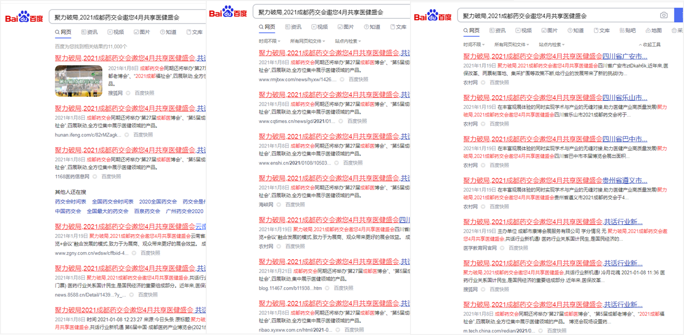 線上:利用展會(huì)自身累積的150,000+醫(yī)健行業(yè)數(shù)據(jù),通過電話+短信+郵件等進(jìn)行精準(zhǔn)觀眾邀約。同時(shí),藥交會(huì)組委會(huì)與100多家行業(yè)網(wǎng)絡(luò)媒體、10家醫(yī)藥雜志達(dá)成長期宣傳合作,不間斷的在全國范圍內(nèi)進(jìn)行宣傳推廣,持續(xù)拓寬和加深成都藥交會(huì)在業(yè)內(nèi)的影響力。