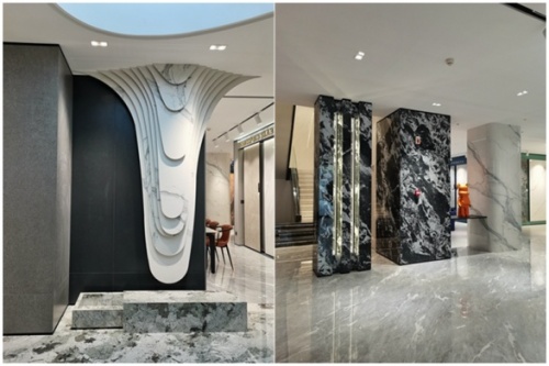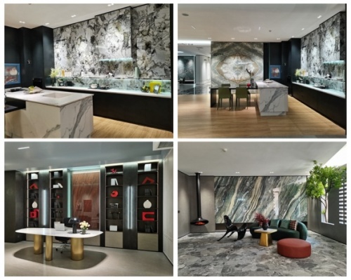 店內(nèi)還匯聚眾多馬可波羅巖板最尖端的巖板科技展示:圓柱&方柱、圓弧熱彎應(yīng)用、馬可波羅巖板加工應(yīng)用落地以及SK精細(xì)鋪貼工藝和AI隨機(jī)無(wú)限連紋。馬可波羅沉淀26年對(duì)自然美學(xué)的探索研究,行業(yè)首創(chuàng)AI隨機(jī)無(wú)限連紋,360度連紋精雕,隨機(jī)兩片產(chǎn)品紋理都可實(shí)現(xiàn)連紋效果,根據(jù)天然材料的紋理變化,突破了以往圖案組合單一、鋪貼流程復(fù)雜等問(wèn)題,在一定程度上實(shí)現(xiàn)私人訂制,賦予空間更多精彩,打造無(wú)限連紋新境界。