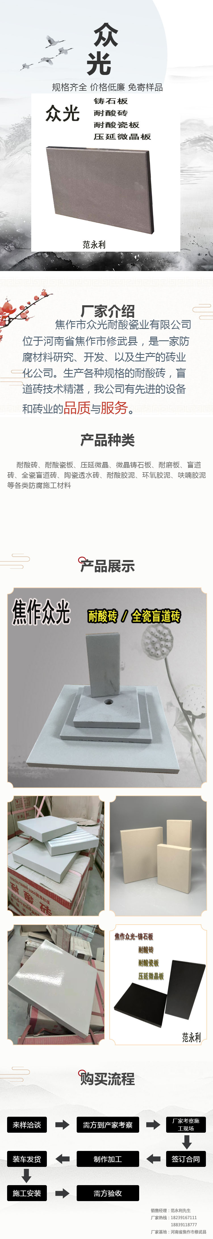 耐酸磚是經(jīng)過(guò)窯爐高溫?zé)贫?,里面含有二氧化?0%以上,由于耐酸轉(zhuǎn)的結(jié)構(gòu)緊密,吸水率小,所以在常溫下也可耐任何濃度的堿性介質(zhì)。在化學(xué)工業(yè)中多應(yīng)用于砌酸溝、酸井、貯酸庫(kù)及載酸大的受沖擊地面。且該產(chǎn)品廣泛適用于石油,化工,飲料廠、醋廠、超市、實(shí)驗(yàn)室、醫(yī)院、水廠、電力化纖,造紙,制藥,化肥,食品,乳業(yè),果汁,電鍍室以及塔,池,罐,槽等防腐工程。對(duì)溫氯鹽水、鹽酸、硫酸、硝酸等酸類(lèi)及在常溫下的任何濃度的堿類(lèi),均有優(yōu)良的抗腐作用。